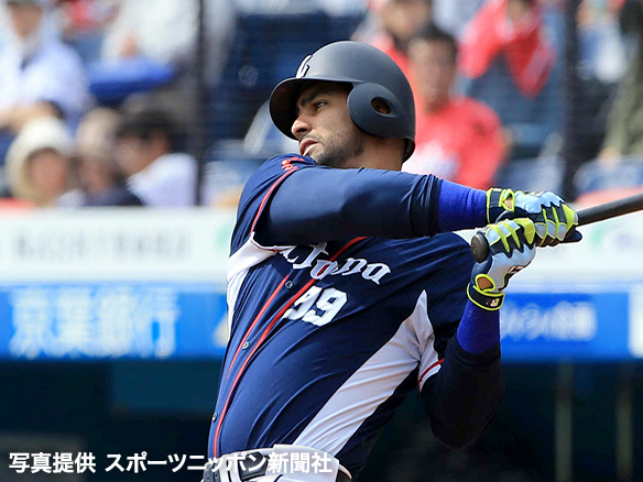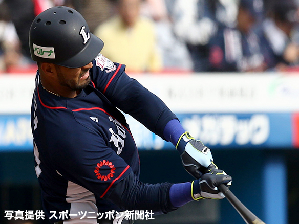 6番 メヒア 左本 1-1から打った瞬間、確信したように打球の行方を見守るメヒア!弾丸ライナーとなった打球はレフトスタンド中段へ突き刺さった!メヒアの1号ソロホームランで勝ち越し!! ロ4-5西 ![]() 4