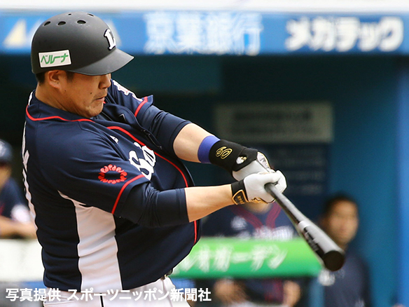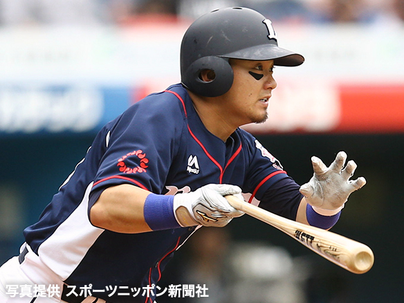 6番 井口 左安 レフトへのヒットを放つ 1塁 |