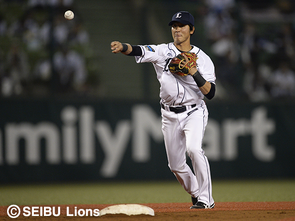 2番 外崎 二ゴ 外角のスライダーを打つもセカンドゴロ 2アウト |
