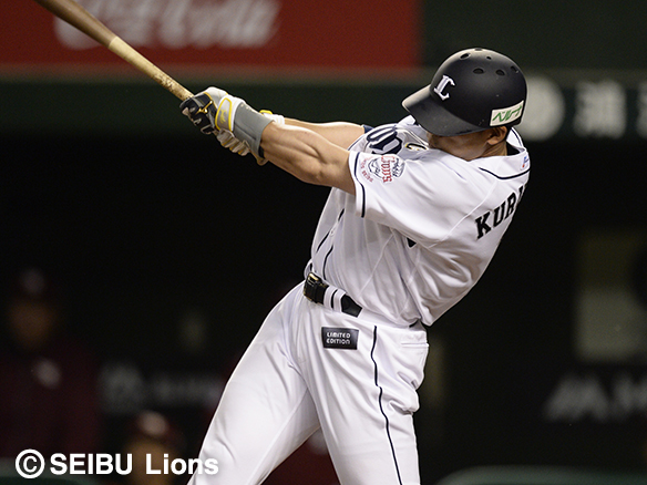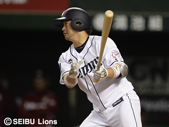 3番 栗山 左翼二 0アウト2塁の1-2から低めのボールをうまく拾い、ライナー性の打球がレフト線に落ちた!2塁ランナーがかえり追加点を挙げる! 西3-0楽 2塁 ![]() 3