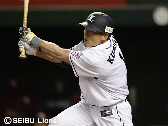 栗山は低めのボールに食らいつき適時二塁打を放つ!