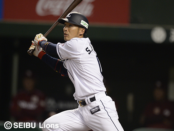 2番 外崎 遊併 ランナー1,3塁から初球を打って鋭い打球となるも、ショート正面へ。ダブルプレーとなるが、その間に3塁ランナーが生還! 西2-4楽 2アウト |