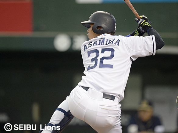 1番 秋山 左本 カウント1-1から外角のストレートをたたいた打球は、反対方向へ高く上がってレフトポール際へ飛び込んだ!秋山の2号ソロホームランで反撃開始! ![]() 1
