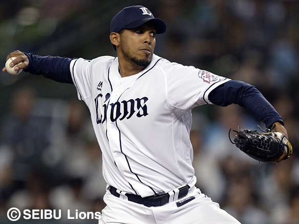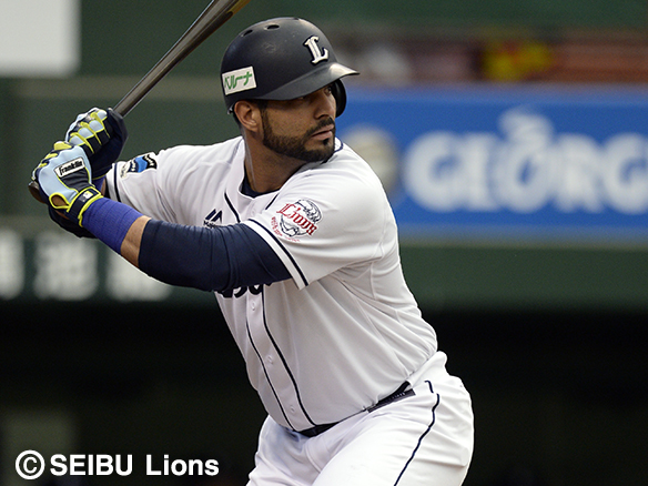 6番 レアード 四球 外角のカーブを見送りフォアボールを選ぶ 満塁 |