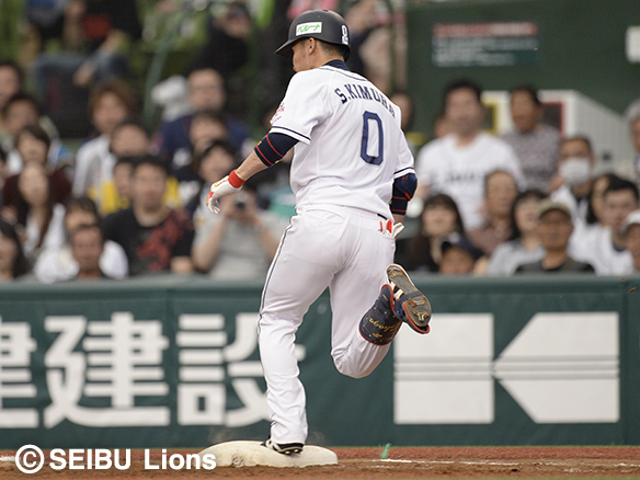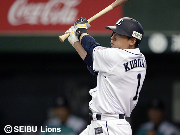 6番 栗山 左安 レフトへのヒットを放つ 1塁 |