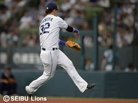投手 小石 投手交代:小石→牧田 守備変更:外崎→ショート |