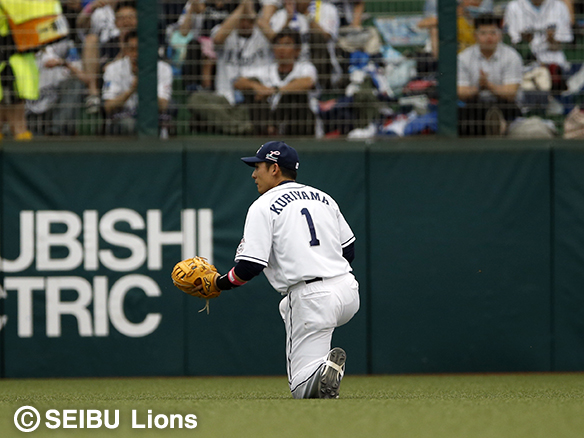 6番 栗山 空三振 外角のフォークに空振り三振でバッターアウト 2アウト |