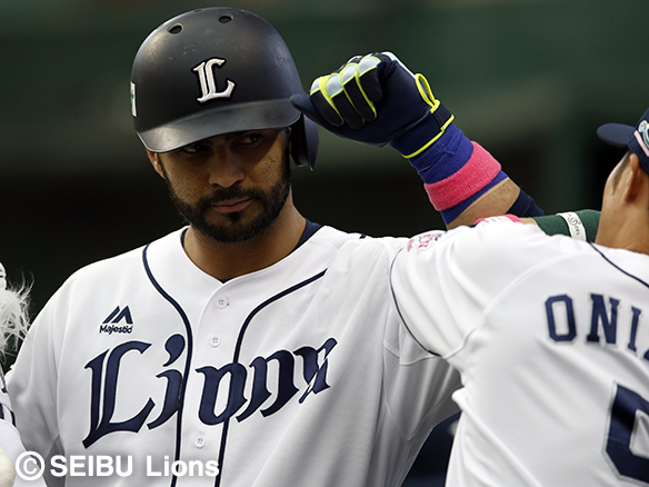 投手 野上 6番 レアード 右越安 ライトへのヒットで出塁 1塁 |