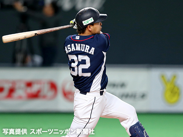 2番 淺間 中安 ランナー2,3塁の3-2からセンターへのタイムリーヒット 日3-4西 1塁 ![]() 2