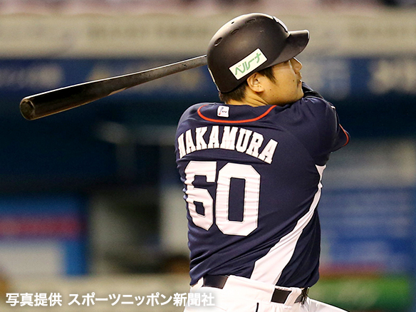 フェンス直撃の二塁打を放つ中村