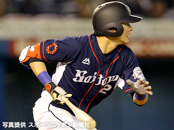 投手 高橋光成 5番 角中 左安 レフトへのヒットを放つ 1塁 |