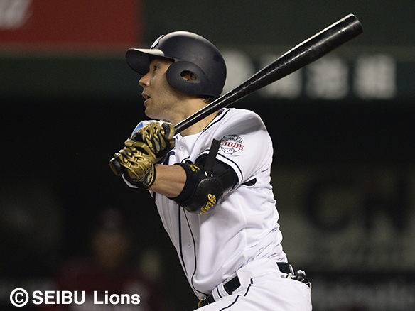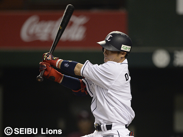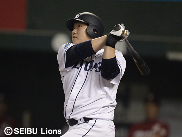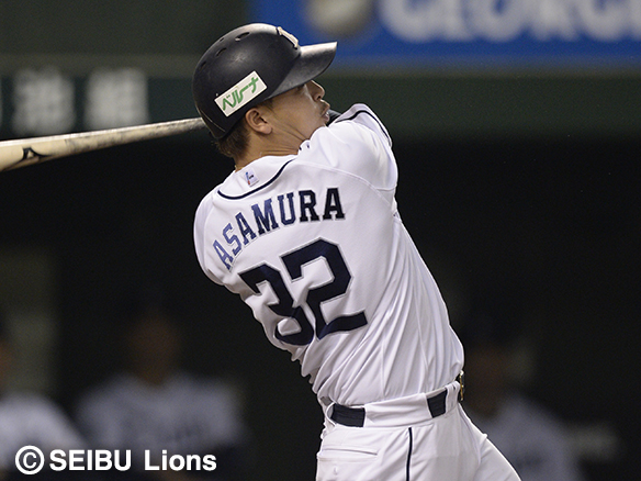 5番 浅村 右中二 2アウト1,2塁の1-0から外角のボールを振り抜いた打球は、右中間を引き裂いた!2人のランナーが次々と生還し、幸先良く2点を先制! 西2-0楽 2塁 ![]() 2