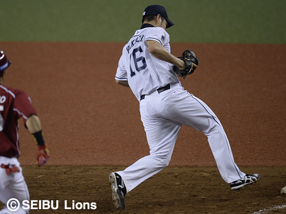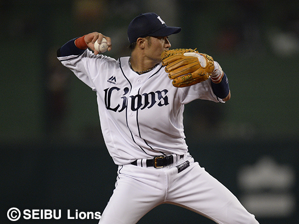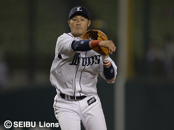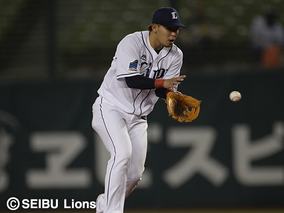 投手 入野 2番 栗山 一直 内角のストレートを打つもファーストライナー 1アウト |