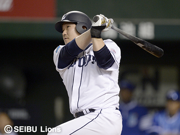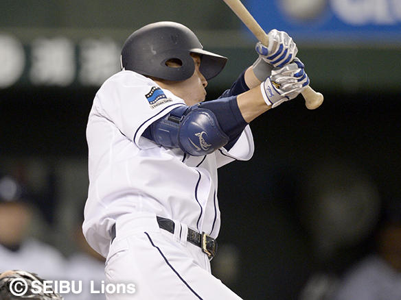 2番 栗山 左安 レフトへのヒットで出塁 1塁 |