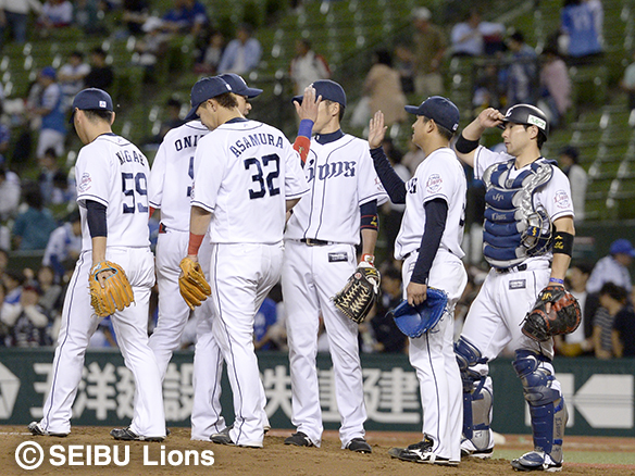 交流戦初白星を喜ぶナイン
