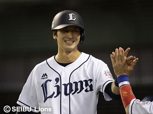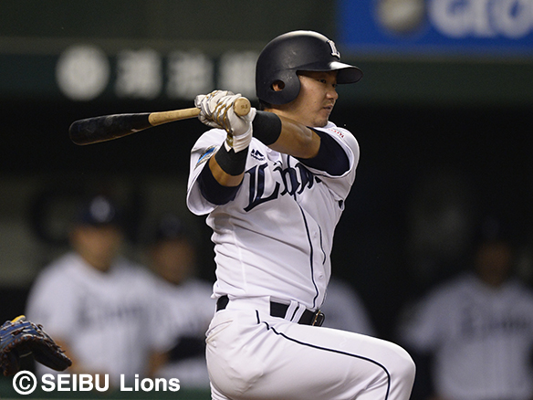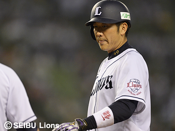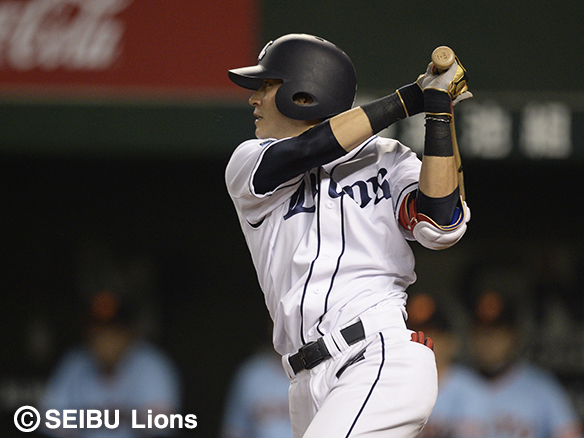 2番 栗山 左中二 ランナー2塁から外角のシュートをとらえた打球は、高く上がって左中間を破る!2塁ランナーがかえり、まずは1点を返した! 西1-3巨 2塁 ![]() 1