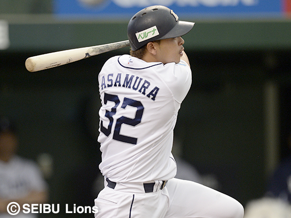 1番 秋山 右安 低めの落ちる球をライトへ打ってヒット 1,3塁 |