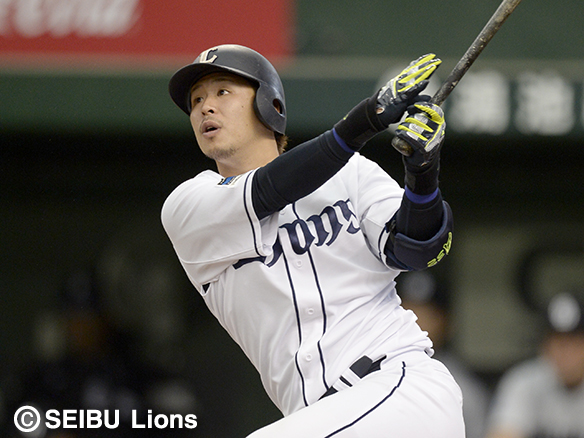 3番 メヒア 左安 レフトへのヒットを放つ 1,2塁 |
