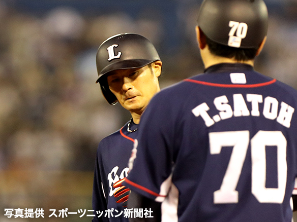 1番 秋山 左安 レフトへのヒットで出塁 1塁 |