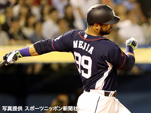 4番 メヒア 三安 サードへの内野安打 1塁 |