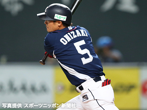 9番 鬼崎 右安 ランナー1,2塁からライトへのタイムリーヒット! 日3-5西 1,3塁 ![]() 2