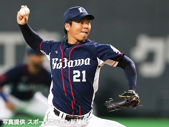 投手 十亀 4番 陽 空三振 カウント1-2から外角の真っ直ぐに空振り三振! 3アウトチェンジ |