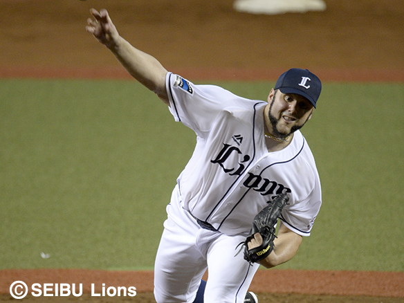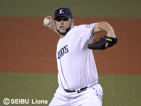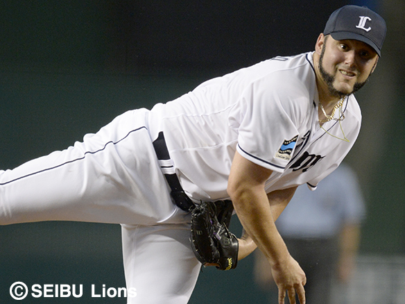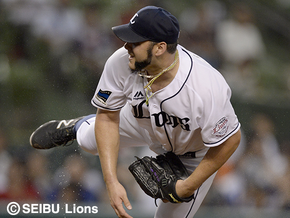 投手 ポーリーノ 5番 銀次 四球 外角のストレートを見送りフォアボールを選ぶ 1塁 |