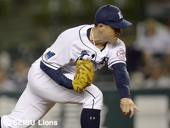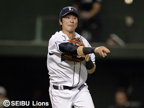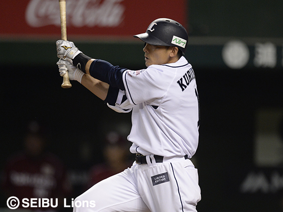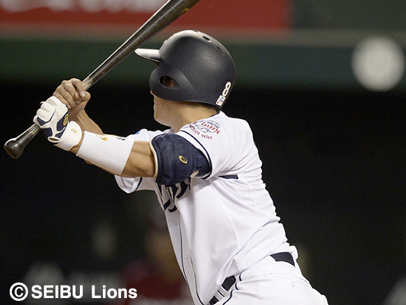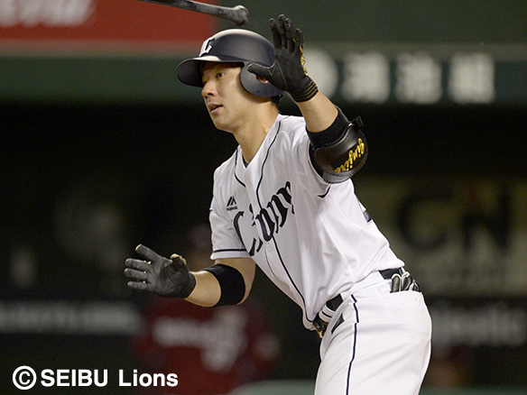 1番 栗山 四球 外角のカーブを見送りフォアボールを選ぶ 1,2塁 |