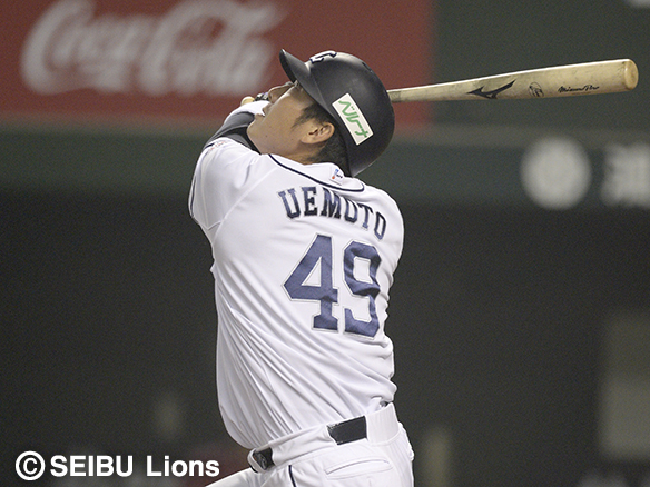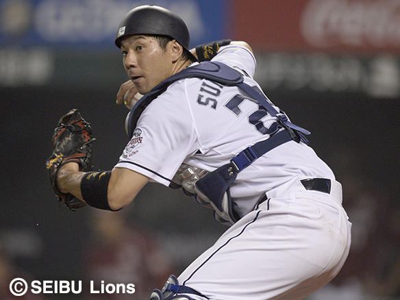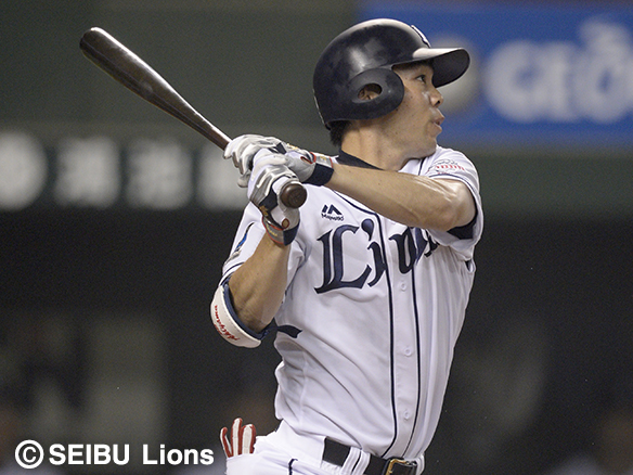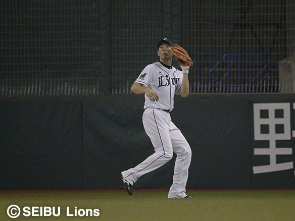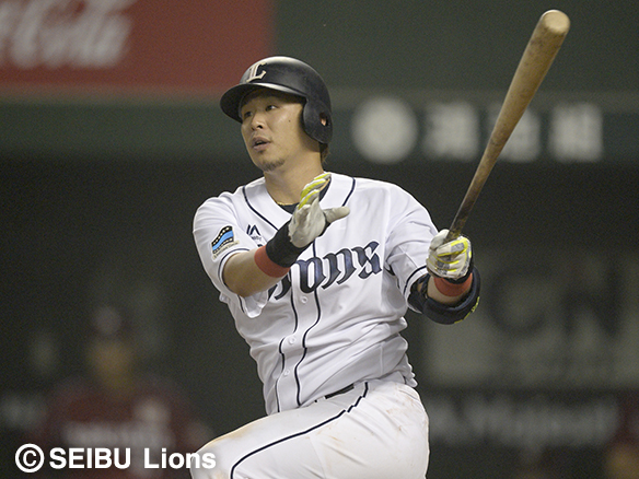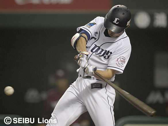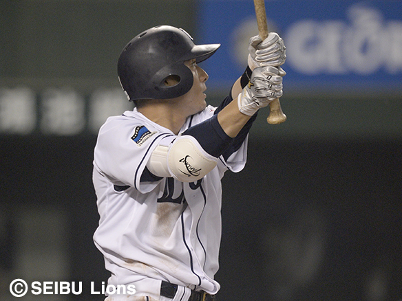 2番 秋山 右安 1アウト2塁の2-1から変化球を引っ張り、鋭い打球がライト前で弾む!2塁ランナーが一気に生還し、先制! 西1-0楽 1塁 ![]() 1