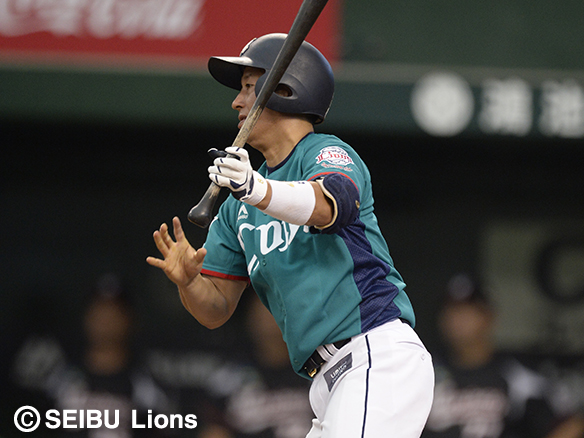 6番 ナバーロ 左安 レフトへのヒットで出塁 1塁 |