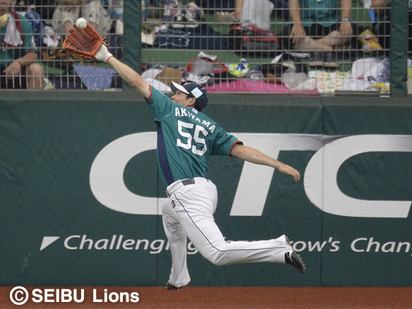2番 秋山 中本 ランナー1,2塁の0-1からカーブを振り抜き、高く上がる打球がセンターフェンスを越える!秋山の2打席連続の6号3ランホームランでリードを大きく広げる! 西5-1ロ ![]() 5