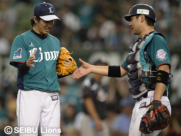 投手 大嶺祐 4番 メヒア 空三振 内角の落ちる球に空振り三振でバッターアウト 1アウト |