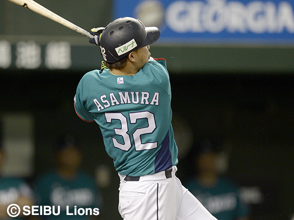 秋山がライトスタンドにホームランを放ち点差を4点に広げる!