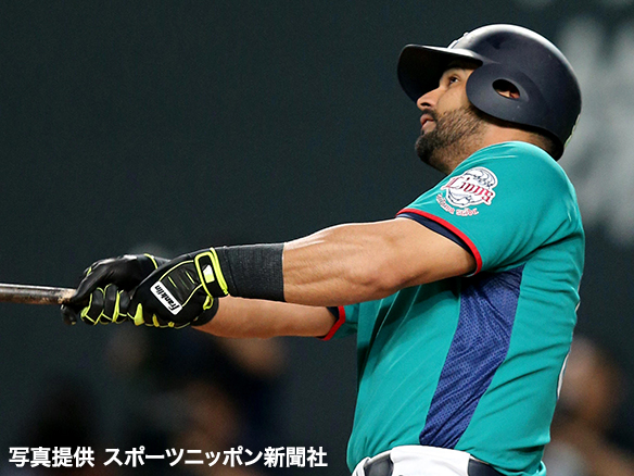 6番 レアード 空三振 低めのカーブを空振り三振 2アウト |