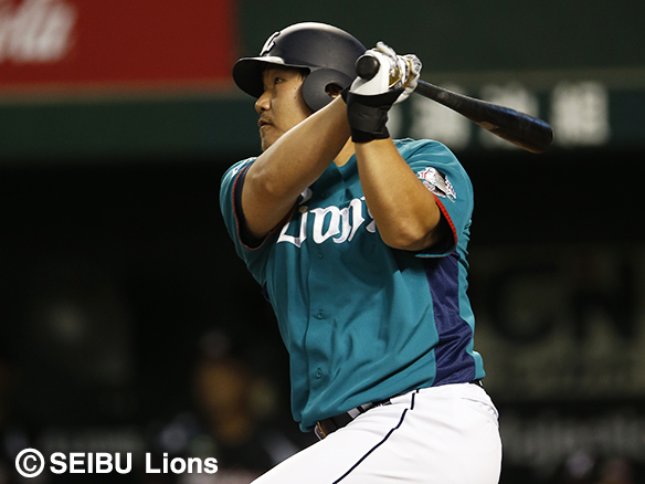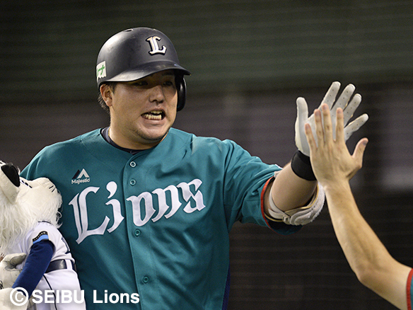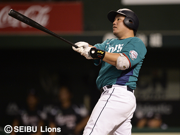 7番 山川 左本 カウント2-1から真ん中に入ったシンカーをジャストミートし、打った瞬間それとわかる打球が左翼席へ! 即座に突き放す! 西4-2ロ ![]() 4
