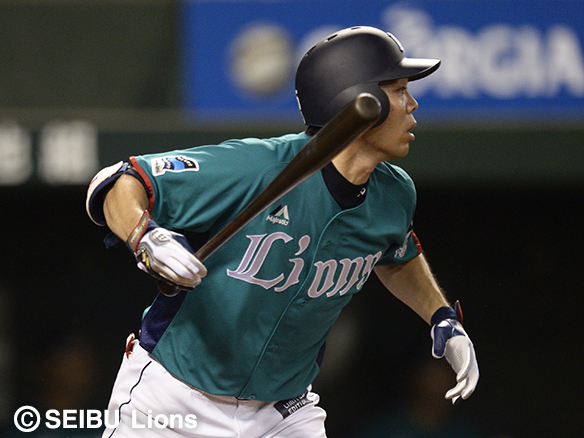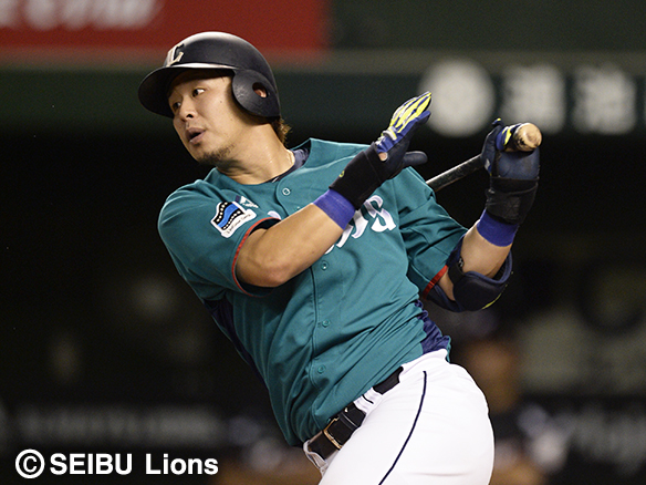 5番 井口 左安 ど真ん中のスライダーをレフトへ打ってヒット |