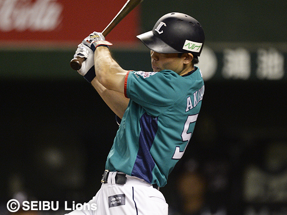 1番 秋山 左安 外角低めのフォークをレフトへ打ってヒット |