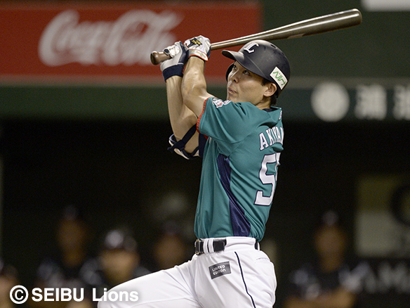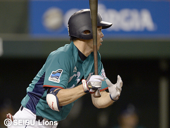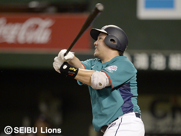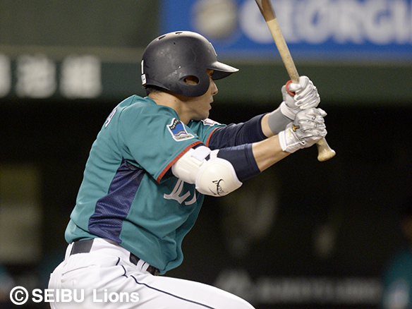 7番 栗山 左安 外角のカーブをレフトへ打ってヒット |