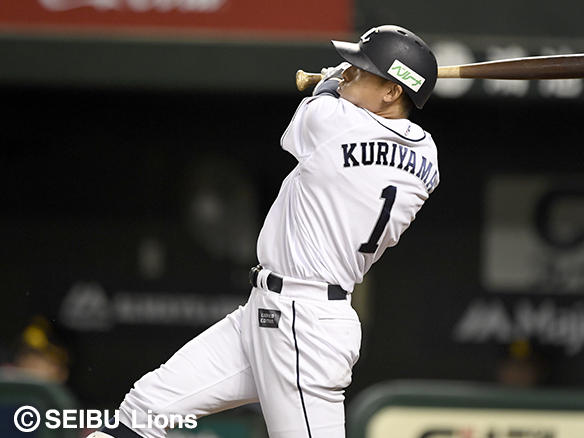 7番 栗山 右中二 ランナー1塁 甘く入ったボールをとらえ、痛烈な打球が右中間を切り裂く!1点差に迫り、同点のランナーが2塁へ到達! 2塁 西5-6ソ ![]() 5