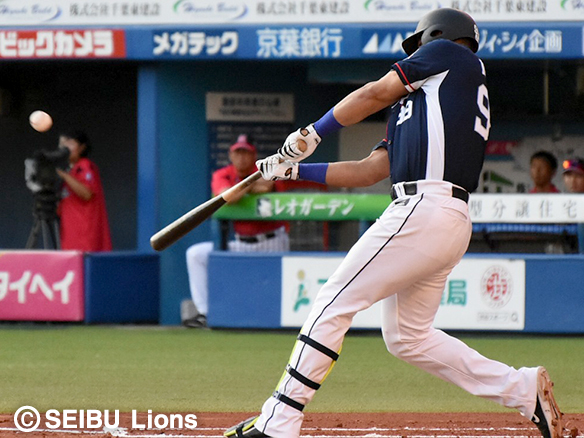 メヒアの打球はバックスクリーンに飛び込み3点を先制!