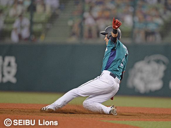 2番 秋山 左安 ランナー1,2塁 真ん中の直球をやや詰まりながらもレフト前へ運んだ! 2塁ランナーが生還して先制! さらに、送球間にランナーがそれぞれ進塁する! 2,3塁 西1-0楽 ![]() 1