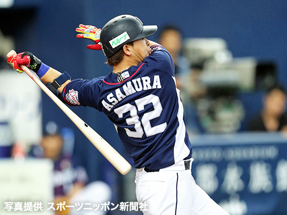 3番 浅村 右安 外角低めのフォークをライトへ打ってヒット 1塁 |