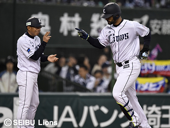 6番 メヒア 右安 ランナー3塁 内角高めのカーブをライトへタイムリーヒット! 1塁 西4-0ソ ![]() 4