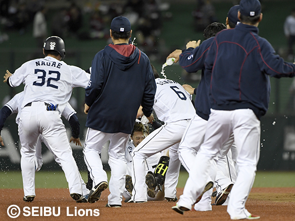 サヨナラを決めた浅村にチームメイトからの祝福!