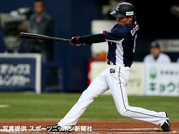 源田がフェンス直撃の2点適時二塁打を放つ!