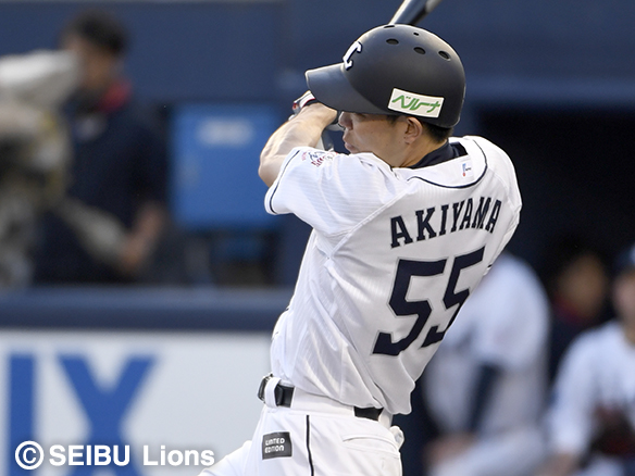 秋山が2球目を振り抜き先頭打者ホームランを放つ!