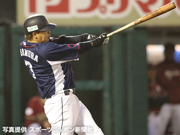 3番 浅村 左安 内角高めのストレートをレフトへ打ってヒット 1塁 |
