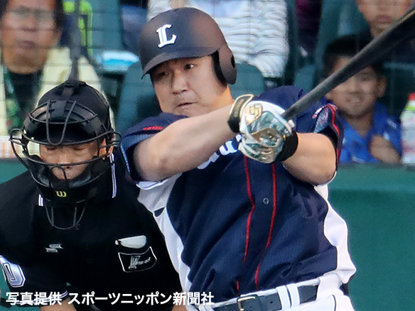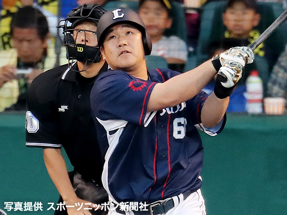 9番 外崎 右安 高めのストレートをライトへ打ってヒット 1塁  |