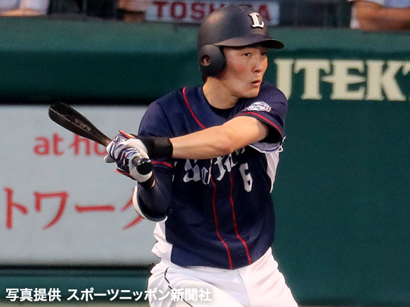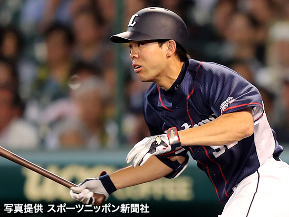 投手強襲の内野安打でチャンスを拡大させる秋山