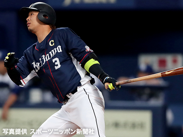 2番 源田 中安 外角高めのストレートをセンターへ打ってヒット 1塁  |